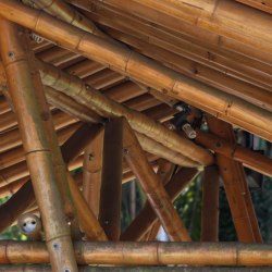 - Transformación del bambú en vigas columnas y superficies